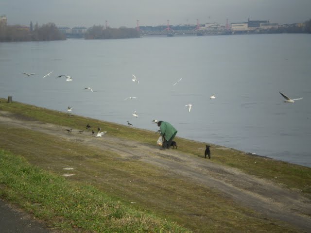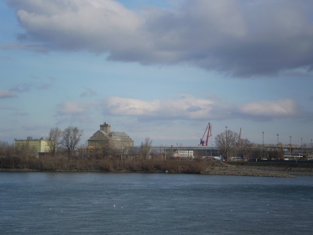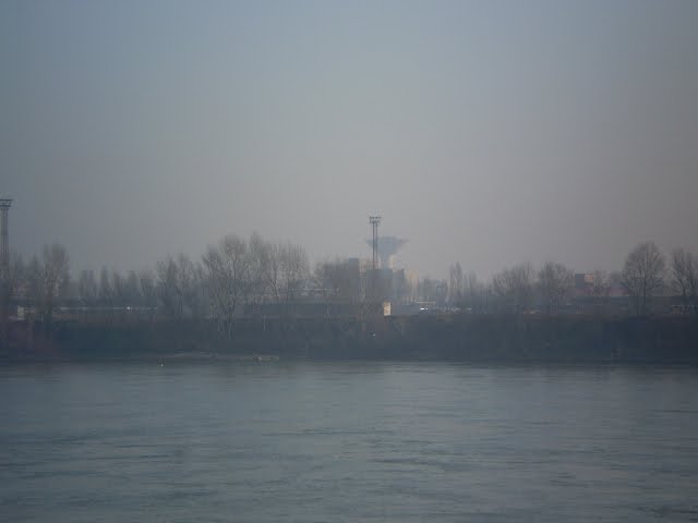 A párás levegőben alig látszott a szemben levő, Csepeli víztorony.