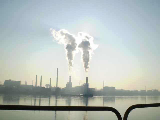 A csepeli erőmű kéményeinek füstje, eltakarta a napot.