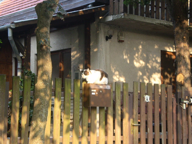 Ez a látvány egy kicsit enyhítette a dühömet, mert ő a saját postaládájukon napozott. Őt már jó néhányszor láttam errefelé, neki jó gazdái lehetnek, mert ahhoz képest, hogy kijáró macska, jól néz ki.
