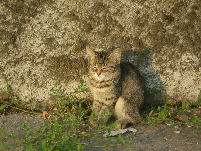 Így gondolkodtam, amikor is egyszer csak egy kanyar után, a vízművek egyik telepe előtt, a kerítés mellett megláttam a gyönyörű napsütésben, összebújva, ezt két kölyök macskát. Ahogy megláttak az egyik eltávolodott, valószínű ő a félősebb. Azt hittem elájulok! Szerintem ezeket ide kirakta valaki, és a sorsra bízta, hogy mi lesz velük. Kb 10-12 hetes kölykök lehetnek.