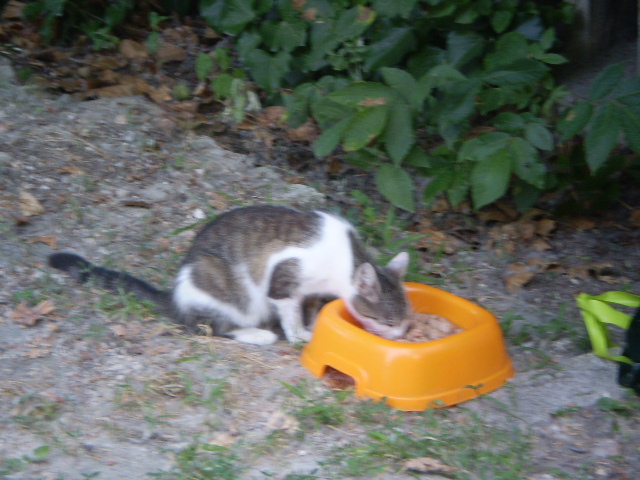 A következő történt, egy reggel azt láttam, hogy a macskák hiába várnak a reggelire, beadtam a derekam és a barátnőmmel magukkal hozott konzervet odaadtuk a macskáknak . Azt láttuk, hogy szinte rávetették magukat, de nem vártunk, mert részben nem akartunk találkozni a ház tulajdonosával ami előtt esznek a macskák, részben meg nem is nagyon akarok kapcsolatot kialakítani velük.